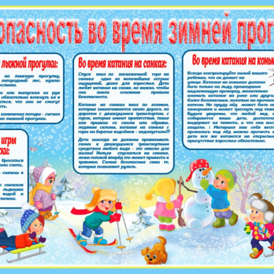 С наступлением зимы детей подстерегает повышенная опасность на дорогах, у водоемов, на игровых площадках. Этому способствует погода и любопытство детей, в каникулярные дни, наличие свободного времени, а главное - отсутствие должного контроля со стороны взрослых.