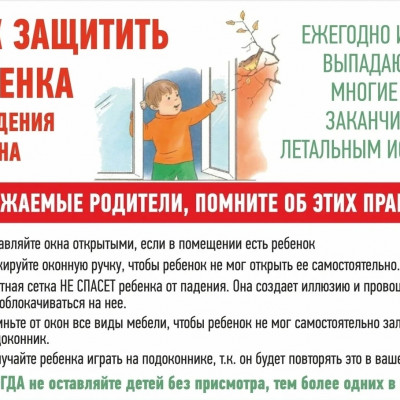 - Воспитываем у детей осторожность и объясняем опасность игр у окон;