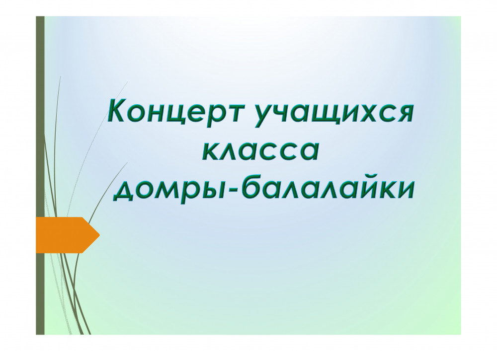 Концерт учащихся преподавателя народного отделения Шабанова Василий Петровича представляет собой творческий отчет класса добры-балалайки. Выступления подготовлены по итогам обучения в 2023 - 2024 учебном году. В концерте примут участие как солисты-инструменталисты исполнители на домрах и балалайках, так и ансамбли струнно-щипковых инструментов. В программе концерта прозвучат классические, современные, народные музыкальные произведения. Юные музыканты выступят перед жителями поселка, родителями и родственниками обучающихся, друзьями.