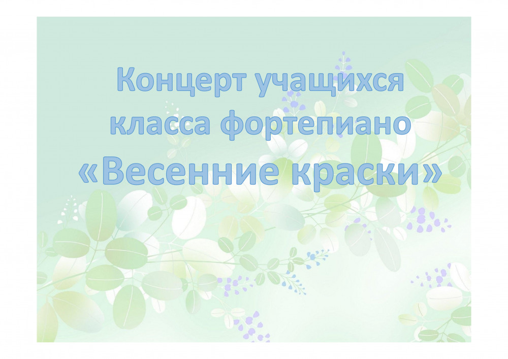 Учащиеся класса фортепиано преподавателя Екатерины Николаевны Болдиноваой подготовили творческий отчёт по итогам обучения в 3-й учебной четверти с наименованием «Весенние краски». Ученики подготовили и продемонстрируют изученные музыкальные произведения как в сольном, так и в ансамблевом исполнении. На концерт приглашены жители села, родители и родственники юных артистов. В программе концерта прозвучат классические и современные сочинения. Зрители получат яркие музыкальные впечатления и положительные эмоции.