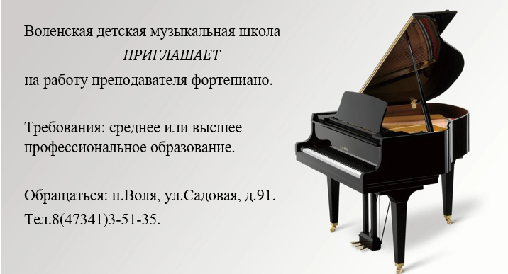 Воленская ДМШ приглашает  на работу преподавателя